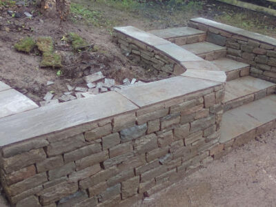 I hadn’t used the stone for a long time and it turned out to be challenging to build with – none of the carbide chisels or the hammers would cut or trim the way I wanted, so I had to resort to the cordless grinder and flush-cut blade. It just slowed the job down so much. And made the place horrendously dusty.